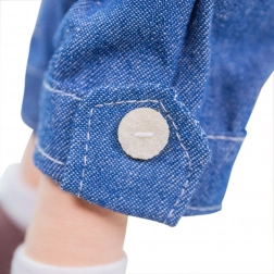 Pruge na majici i plave kratke hlače daju lutki zaigran izgled koji djeca vole.