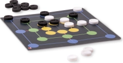 Obostrana ploča omogućuje brzo prebacivanje između dame i mlina. Jedan set žetona dovoljan je za obje igre, pa možete odmah početi igrati.
