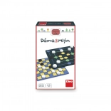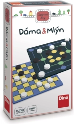 Putna dama i mlin brenda Dino idealan je izbor za obiteljske izlete, godišnje odmore i čekanja na putu. Obostranu ploču lako okrenete – s jedne strane je šahovnica 8 × 8 za damu, s druge klasičan raspored za mlin. Jedan set žetona dovoljan je za obje igre, tako da vam ne treba ništa dodatno.