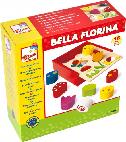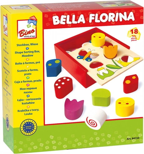 Predstavljamo savršenu igračku za vaše male istraživače – drvena slagalica Bella Florina od marke Bino. Ova prekrasna slagalica uči vaše dijete prepoznavati oblike i boje pomoću jednostavnog umetanja šarenih kockica u kutijicu.