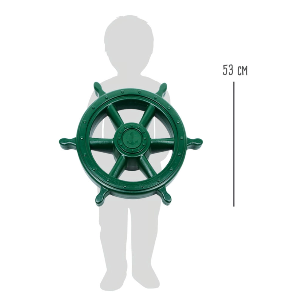 Svaki kutak pretvorite u palubu gusarskog broda! Veliko dječje kormilo Jumbo s promjerom 53 cm odmah privlači pažnju, a zahvaljujući zvučnom efektu pri okretanju uvlači djecu u igru. Odlično pristaje u vrt, na dječje igralište, penjalicu i u dječju sobu.