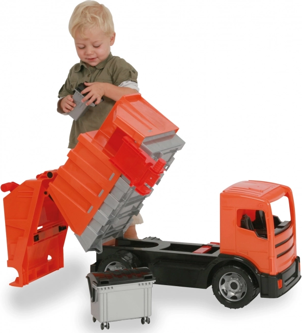 Ovaj veliki narančasti kamion za smeće, inspiriran pravim modelom MERCEDES ACTROS, donosi autentične doživljaje u dječju sobu. Dva neovisna podizna mehanizma i priložene kante omogućuju oponašanje stvarnog skupljanja i pražnjenja otpada. Izdržljiva izvedba od vrhunske plastike udovoljava europskim normama i podnosi zahtjevniju upotrebu.