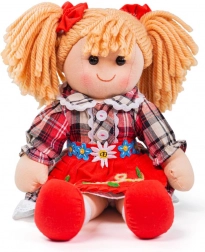 Tkanena lutka Mandie šarenih boja i mekog dodira divna je prijateljica za najmlađe. Topli tekstili, nježna kosa od pređe i simpatičan osmijeh mame na maženje i igru. Stilska karirana haljinica s vezom i čipkom daje lutki tradicionalni šarm koji djeca vole.