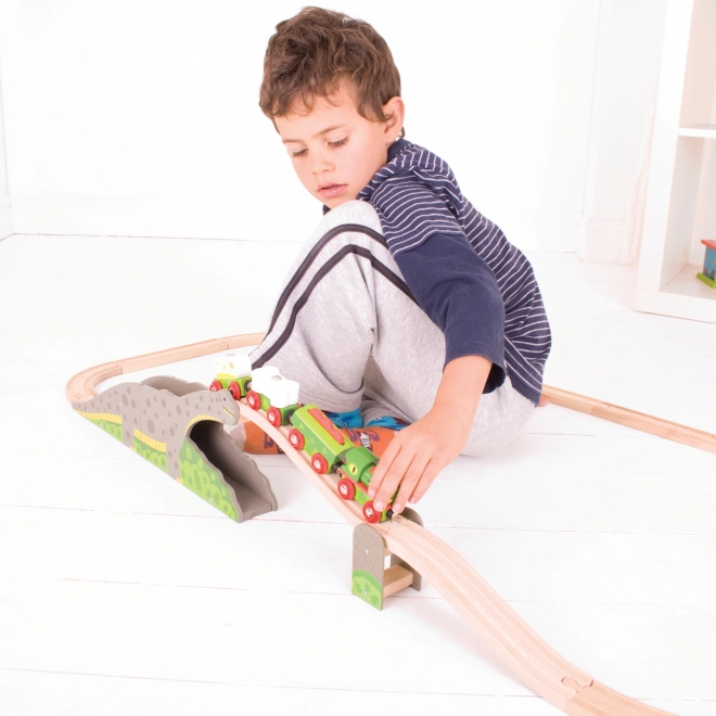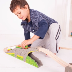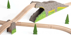 Priredite djeci originalan element za njihovu željezničku prugu – dinosaurovski most koji svaku vožnju pretvara u avanturu. Robusna drvena konstrukcija s motivom dinosaura omogućuje kompozicijama prelazak preko leđa i vožnju kroz tunel, što povećava raznolikost trasa i potiče kreativnu igru.