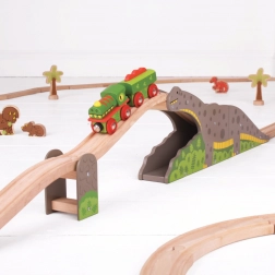 Otkrijte zabavni dinosaurovski most za drvene željezničke pruge, gdje se željeznica susreće s praživotnom avanturom. Vlakić vozi preko leđa „brontosaura” i ispod njega, što igri dodaje uzbuđenje, maštu i vježba finu motoriku. Kompatibilan s većinom drvenih željezničkih pruga na tržištu.