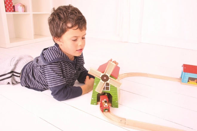Drvena vjetrenjača Bigjigs Rail pretvara svaku igraču prugu u šarmantni seoski kutak. Djeca mogu prolaziti tunelom kroz mlin i zavrtjeti lopatice – zabava koja prirodno potiče koordinaciju ruka–oko i kreativno pripovijedanje. Robusna drvena izrada i žive boje pozivaju na igru iznova i iznova.