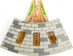 Spremište je u potpunosti kompatibilno s većinom uobičajenih drvenih sustava, pa ga lako uklopite u postojeći svijet tračnica. Igra sa spremištem razvija maštu, finu motoriku i koordinaciju.