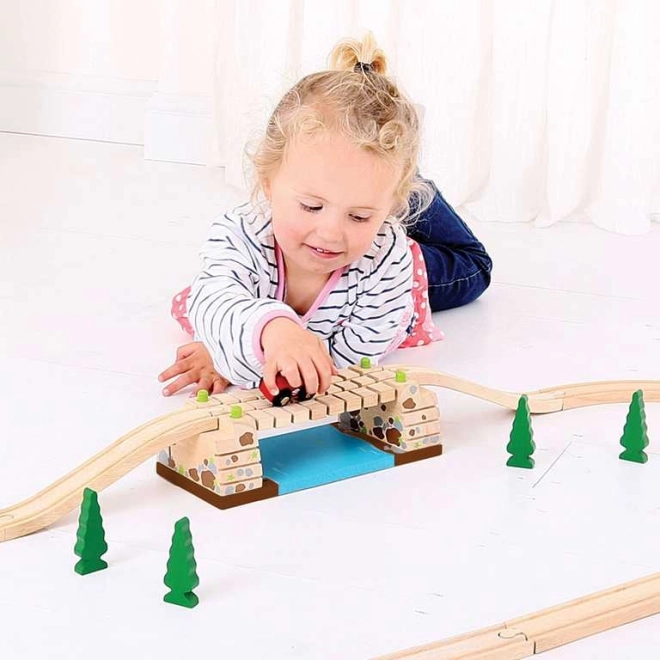 Most je kompatibilan sa svim uobičajenim drvenim vlakovodnim setovima i pridonosi autentičnosti zahvaljujući zvukovima koje vlak proizvodi pri prelasku. Odlično potiče maštu, spretnost i koordinaciju djece.