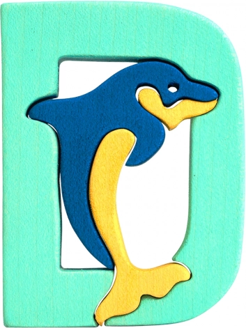 Ovo drveno slovce D s veselim dupinom pomaže djeci prirodno upoznavati oblike i slova kroz igru. Pojedini dijelovi točno sjedaju na svoje mjesto pa se djeca uče koncentraciji, strpljenju i koordinaciji oko–ruka.