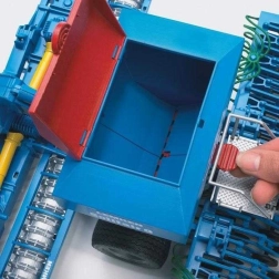 Spremnik se može napuniti pijeskom ili drugim rasutim materijalom te se jednim potezom poluge ponovno isprazniti – idealno za realističnu igru.
