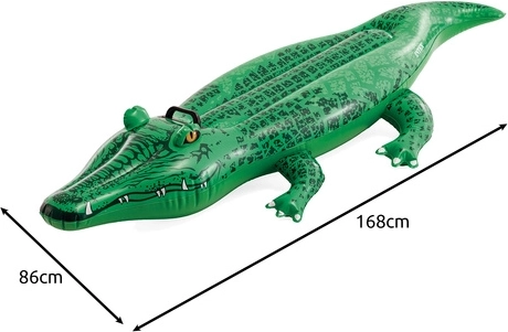 Nafukajući krokodil INTEX odlična je vodena igračka za djecu od 3 godine. Zahvaljujući čvrstoj ručki pruža stabilnost i sigurnost, dok izdržljiv PVC (0,25 mm) jamči dug vijek trajanja i pri čestoj upotrebi. Realističan dizajn razveselit će male plivače i potaknuti aktivnu zabavu u vodi.