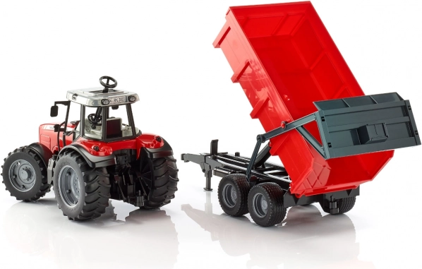 Bruder traktor MASSEY FERGUSON s kiperskom prikolicom, crveni