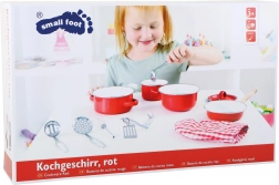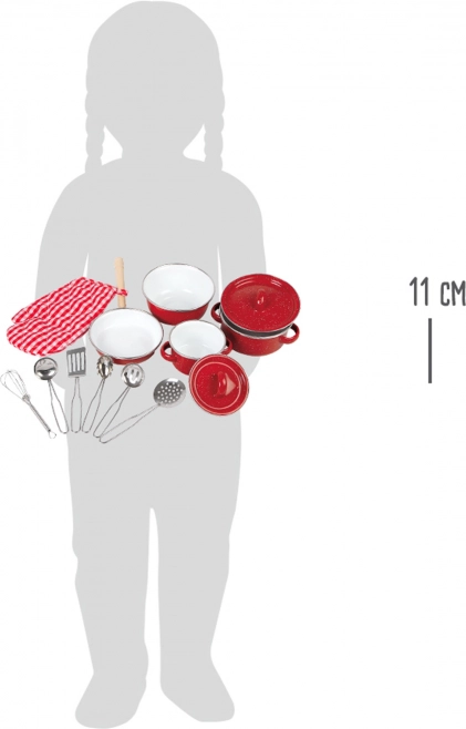 Ovaj prekrasni crveni set metalnog posuđa savršen je za sve male kuhare. Sadrži razne kuhinjske potrepštine, kao što su lonac, tava, rukavica i drugi alati koji pomažu djeci da se osjećaju kao pravi šefovi kuhinje. Odličan je za interaktivne igre i razvijanje kreativnog razmišljanja.