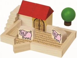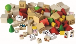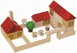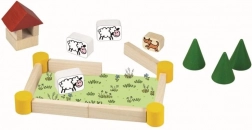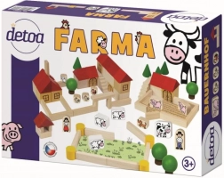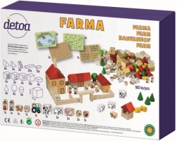 Ovaj drveni set sadrži različite oblike, boje i veličine elemenata koji djeci omogućuju stvarati vlastitu farmarsku scenografiju. Dijelovi s otisnutim atraktivnim ikonama prikazuju seoske motive, ponajprije figure životinja, čime potiču dječju kreativnost.