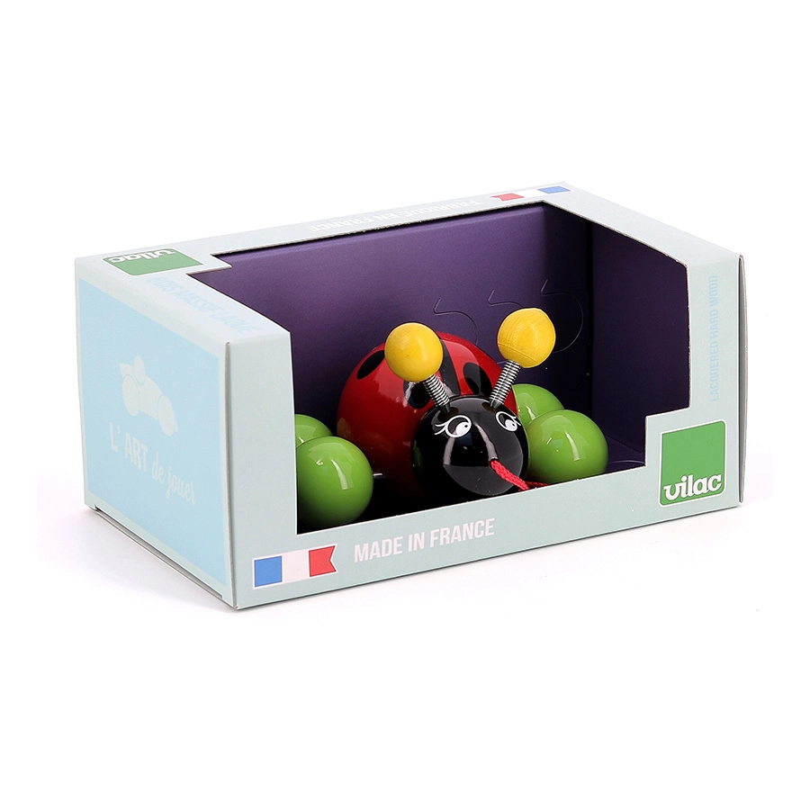 Slatka drvena vučna bubamara VILAC od lakiranog punog drva razveselit će svako dijete. Tijekom kretanja vesela se ticala na oprugama njišu, što djeci pomaže razvijati ravnotežu, koordinaciju pokreta i potiče aktivnu igru. Kvalitetna izrada i proizvodnja u Francuskoj jamče sigurnu i izdržljivu igračku za svaki dan.
