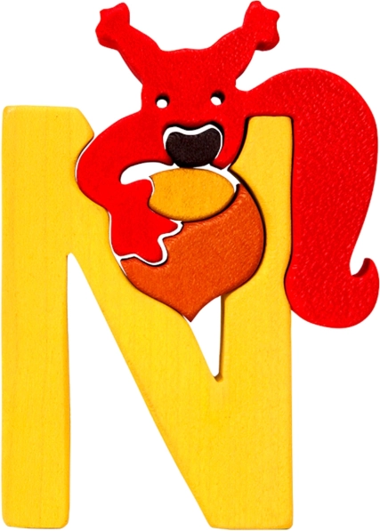 Učite djecu abecedu na razigran način s drvenim umetaljkom slova N s motivom vjeverice. Masivno drvo, sigurne boje i razvoj motorike i logike čine ovu igračku izvrsnim izborom za prvo upoznavanje sa slovima.