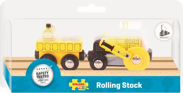 Otkrijte čaroliju zlatnog doba željeznica s drvenom replikom lokomotive Rocket od Bigjigs Rail. Ovaj prekrasan model izrađen je od kvalitetnih i održivih prirodnih materijala, čime se osigurava dugi vijek trajanja i otpornost na habanje.