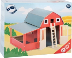 Velika drvena staja inspirirana američkim štalama nudi dovoljnu visinu i prostor za velike figurice, preklopne krovne dijelove za lak pristup i promišljene elemente poput verande, sjenika i priložene ljestve. Zahvaljujući jednostavnoj montaži prema uputama brzo je pripremite za igru. Dimenzije 32 × 24 × 25 cm, za djecu od 3 godine naviše.