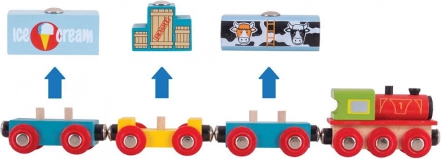 Drveni teretni vlak od Bigjigs Rail dovozi osnovne zalihe i posebne poslastice, a dodatno sadrži 3 tračnice za jednostavno proširenje pruge. Kompatibilan je sa svim uobičajenim drvenim željezničkim setovima, izrađen od kvalitetnih prirodnih materijala i u skladu je s europskim sigurnosnim standardima. Poticanje mašte, spretnosti i koordinacije za djecu od 3 godine naviše.