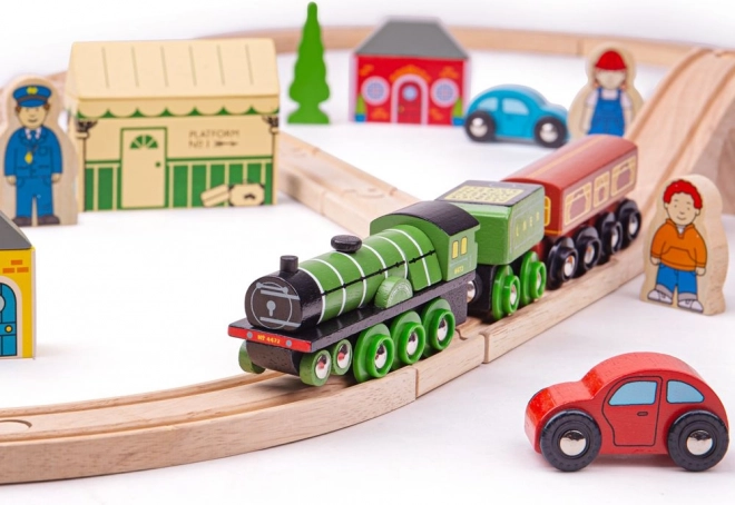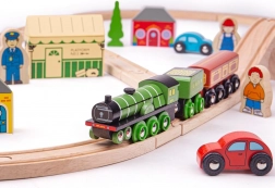 Flying Scotsman spada među najpoznatije vlakove svoje ere, a uz ovu drvenu željezničku prugu djeca mogu ponovno proživjeti njegova slavna putovanja. Set sadrži lijepo izrađen vlak koji će vas povesti na nostalgičnu vožnju punu vijadukata i prirodnih krajolika. U kompletu su i retro kolodvor, kuće i automobili uz prugu.