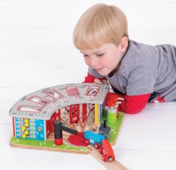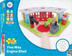 Drveno skladište je dizajnirano za pet različitih vlakova i sadrži funkcionalnu okretaljku koja omogućuje lako kretanje vlakova između pojedinačnih garaža. Sustav sadrži otvoriva vrata i pumpnu stanicu što doprinosi realistično iskustvo igre.
