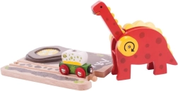Dinosaur djeluje kao dizalica – njegov pokretni vrat s magnetskim „ustima“ lako prenosi dinosaurovo jaje na vagončić. Odličan trening koordinacije ruka–oko.