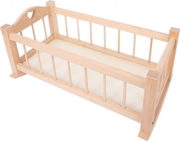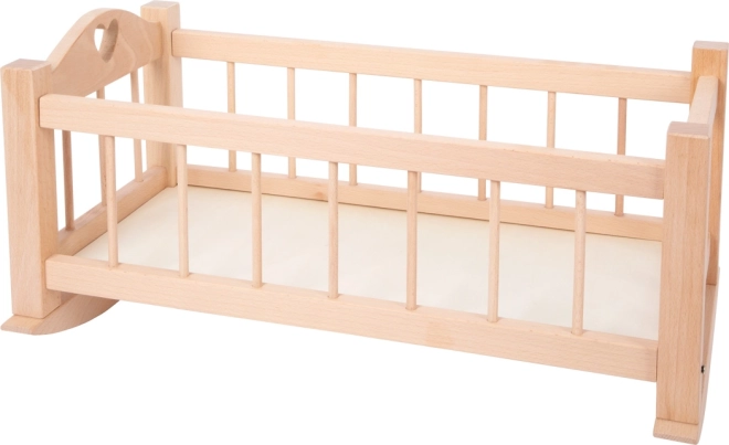 Ova kolijevka za lutke od prirodnog drva, lakirana prozirnim lakom, klasik je među namještajem za lutke. Prekrasan dizajn s izrezom u obliku srca, kao detalj pun ljubavi. Glavne značajke: potiče aktivno igranje i trenira socijalne vještine, stabilna konstrukcija, kvalitetna izrada, pogodna za vrtiće