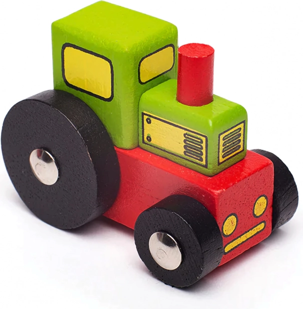 Ovaj šareni set donosi još više mašte u dječji željeznički svijet. Traktor se može skinuti s vagona i koristiti u igri na farmi ili ga pomoću utovarne rampe postaviti natrag na vagon i poslati na put po tračnicama. Zahvaljujući magnetskim spojkama vagon se brzo spaja s lokomotivom i ostalim vagonima, pa je proširenje postojeće garniture pitanje trenutka.