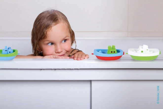 Tri šarena čamca plutaju i mogu se koristiti u kadi, bazenčiću i na suhom. Jednostavan oblik i žive boje pozivaju na igru.