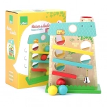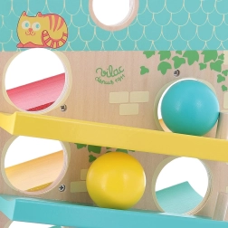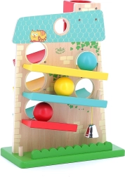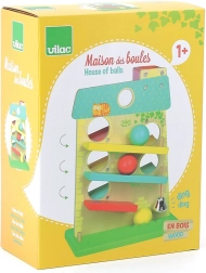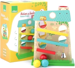 Drvena kaskadna kućica VILAC oduševit će malu djecu zabavnom vožnjom loptica i privlačnim dizajnom. Nudi 3 rampe s obje strane, niz koje se drvene loptice kotrljaju odozgo prema dolje, a pri dolasku na cilj zazvoni metalno zvonce. Igračka u pastelnim bojama razvija spretnost i logičko razmišljanje te pruža sate radosne igre.