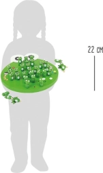 Dječja drvena igra Soliter u obliku žabe od small foot donosi klasičnu logičku zabavu u simpatičnom izdanju. Cilj je skakanjem uklanjati žabice i ostaviti što manje figurica na ploči. Podržava logičko razmišljanje, koncentraciju i strateško planiranje. Zahvaljujući kompaktnim dimenzijama odlična je za putovanja, a njezina izdržljiva drvena izrada i šareni dizajn razveselit će djecu i roditelje.