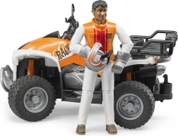 Akcijski set za male avanturiste: plastični četverokotač u mjerilu 1:16 s detaljnom figuricom vozača. Nudi opruge na osovinama, meke gumene gume s profilom i pokretne kotače za glatku vožnju. Tu su i odvojivi prtljažni prostor, držači za alat te figurica s pokretnim zglobovima. Proizvedeno u Njemačkoj od kvalitetne ABS plastike.