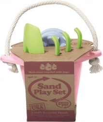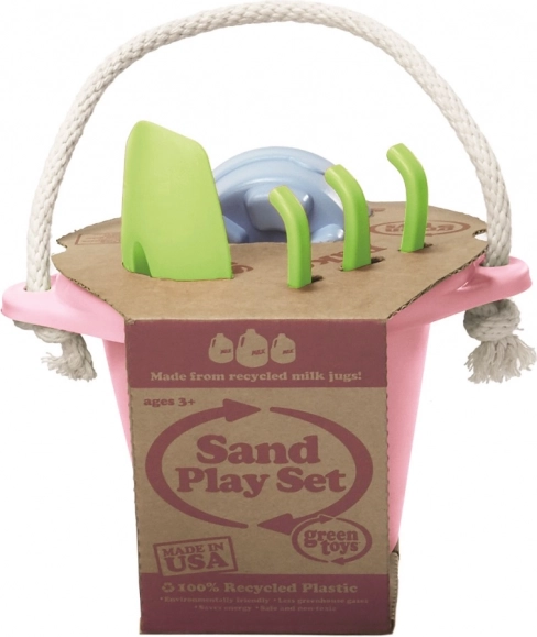 Green Toys nudi odgovorne igračke od 100% reciklirane plastike koje ne sadrže PVC, bisfenol ni ftalate. Ovaj ružičasti set za pijesak sadrži: