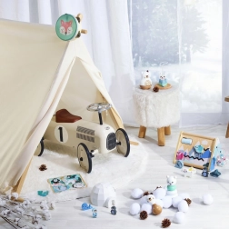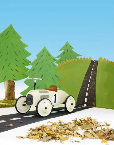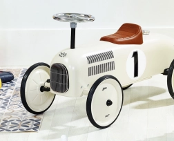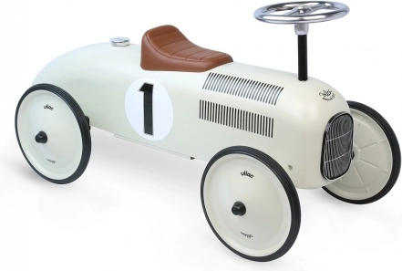 Stilska dječja guralica u izgledu trkaćeg automobila oduševit će svojim retro šarmom i kvalitetnom metalnom izradom. Nudi tihu vožnju zahvaljujući gumiranim kotačima, lako upravljanje volanom i čvrstu konstrukciju s nosivošću 20 kg – idealno za male vozače od 1,5 godine.