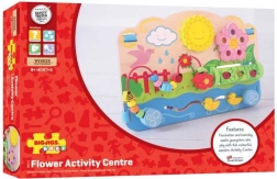 Drvena motorička ploča BIGJIGS BABY Cvijeće donosi šarolik svijet aktivnosti koje podupiru prirodan razvoj djece od 6 mjeseci. Djeca mogu pomicati pačiće po stazi, okretati labirint te pomagati bubamari, trutu i leptiru putovati gore–dolje po koraljkastom bludištu. Svaki je element osmišljen da potakne istraživanje i uvježbava hvat i koordinaciju.