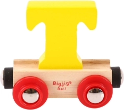 Drveni vagonići Bigjigs Rail sa slovom T u raznim bojama, kao što su crvena, ljubičasta, narančasta, zelena, žuta ili plava, idealni su za sastavljanje vlastitih imenskih ili drugih vlakova. Zahvaljujući magnetskim spojnicama kompatibilni su s ostalim drvenim vlakovima na tržištu. Ovi vagonići odličan su dodatak za razvoj djece u različitim prilikama, bilo da se radi o blagdanima ili rođendanima.