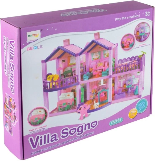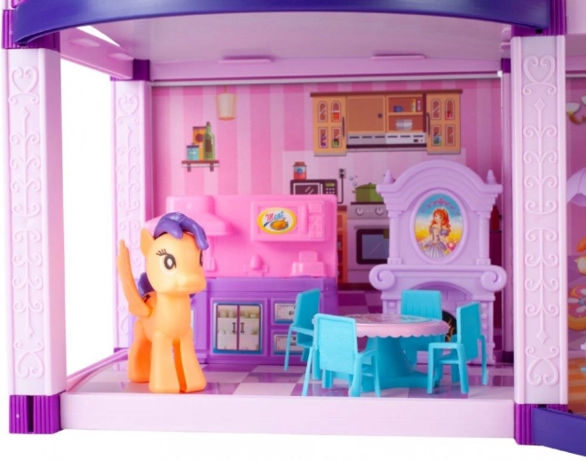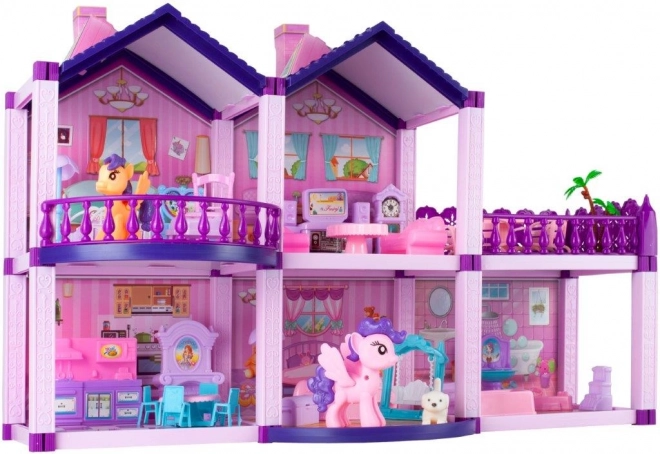 Jedinstvena kućica za lutke izrađena od plastike, idealna za mnoge sate zabave za svaku djevojčicu i njezine prijatelje. Kuća je savršena za ponije i psa koji su dio seta, ili za lutke. Svatko će se u ovoj rezidenciji osjećati kao u palači. Velika kuća ima i veće komade namještaja, pa je zabava lakša i stvarnija. Interijeri savršeno odražavaju pravi dom.