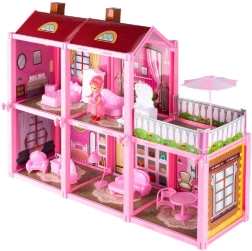 Ova stilska kućica za lutke donosi djeci svijet mašte: više prostorija, balkon i bogate dodatke za svakodnevne priče. Zahvaljujući promišljenim dimenzijama (duljina 60 cm, širina 17 cm) stane na policu ili dječji stolić, a istovremeno pruža dovoljno prostora za igru.