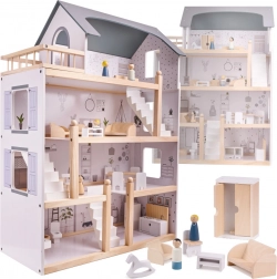 Svijetla drvena kućica za lutke s namještajem - 80 cm