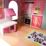 Pažljivo brušeni dijelovi osiguravaju sigurnu igru bez ivera. Otvarajuća vrata kuhinjskih ormarića, njihajuća kolijevka, stol sa stolicama i ormar potiču maštu te razvijaju finu motoriku i društvene vještine pri zajedničkoj igri i slaganju.