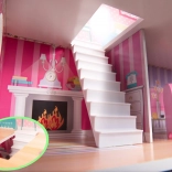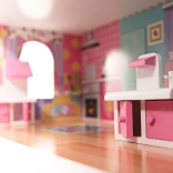 Velika drvena kućica za lutke visine 70 cm od MDF-a nudi djeci tri kata, pet prostorija i terasu, bogat set namještaja te efektno LED osvjetljenje. Zahvaljujući otvarajućim ormarićima, pažljivoj izradi i sigurno zaobljenim elementima idealna je igračka za kreativnu i maštovitu igru, ali i prekrasna dekoracija dječje sobe.