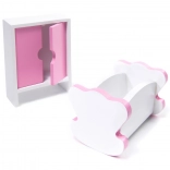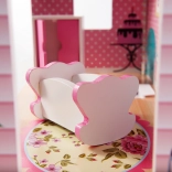Ova prostrana drvena kućica za lutke razveselit će djecu i roditelje. Tri kata s minimalnom visinom etaže od 18 cm skrivaju kuhinju, kupaonicu, spavaću sobu, dnevni boravak i stubište s balkonićima. U kompletu su stilski komadi namještaja od drva i plastike te samoljepljiva LED traka s hladno bijelim svjetlom – idealna i kao nježna noćna lampica.