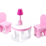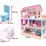 Drvena kućica za lutke 70 cm s LED osvjetljenjem – ružičasta, MDF, s namještajem