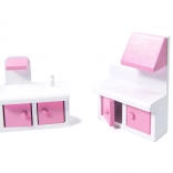 U kompletu je 9 komada namještaja: ormar, kolijevka, lampa, 2 stolice, stol, kuhinja s napom, ormarić s umivaonikom i WC – spremno za odmah igranje.