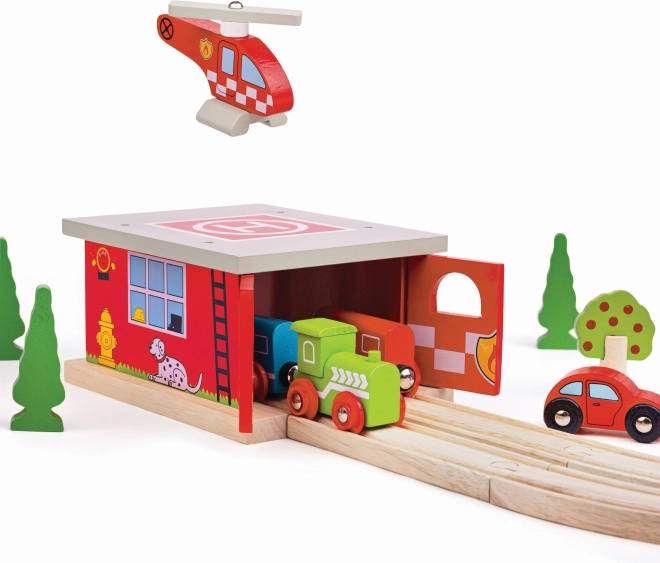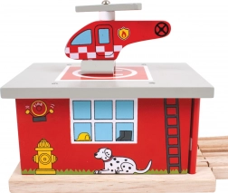 Proširite dječji svijet vlakova akcijskim vatrogasnim depom s heliportom. Detaljni otisci, prolazna konstrukcija i priloženi helikopter potiču napete priče i spasilačke misije. Postaja je pažljivo izrađena od kvalitetnog drva i udovoljava europskim sigurnosnim normama.