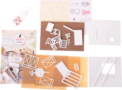 U pakiranju je sve potrebno: dijelovi za slaganje sobe, elementi opreme i dekoracije, ljepilo i detaljne upute sa slikama. Rasvjeta se napaja 2× AAA 1,5 V i 3× LR54 1,5 V (baterije nisu uključene u pakiranje). Preporučeno od 8 godina. Gotov model ima dimenzije 17,1 × 13 × 11,6 cm; pakiranje 25 × 18 × 6 cm.