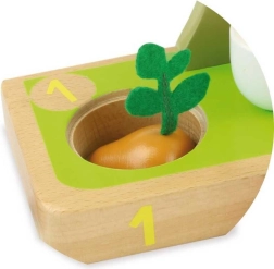 Numerirana drvena baza 1–5 uči djecu brojati i uspoređivati količine. Slaganje povrća i oblika potiče logičko razmišljanje i koordinaciju.