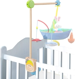 Čvrsta drvena konstrukcija minimalizira vibracije i ljuljanje, tako da je vrtuljak sigurno ovješen i u idealnoj visini iznad bebe.