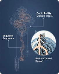 Uživajte u umirujućem tikanju i glatkom kretanju klatna. Otvoreni dizajn sa zupčanicima naglašava mehaničku ljepotu sata i podržava vintage stil interijera.