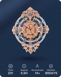 Ovaj DIY model spaja opuštajuće iskustvo slaganja i praktičnu funkciju. Nakon sastavljanja zidni sat postaje elegantna dominanta prostorije – s rimskim brojkama, ukrasnim ornamentima i vidljivim zupčanicima koji naglašavaju njegov vintage karakter.